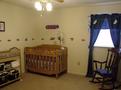 I recently realized I never posted any pictures of the finished result of Adam’s nursery! We didn’t paint since we live on the base, but we did decorate and I think it came out rather nice, even if it may be plain compared to some…