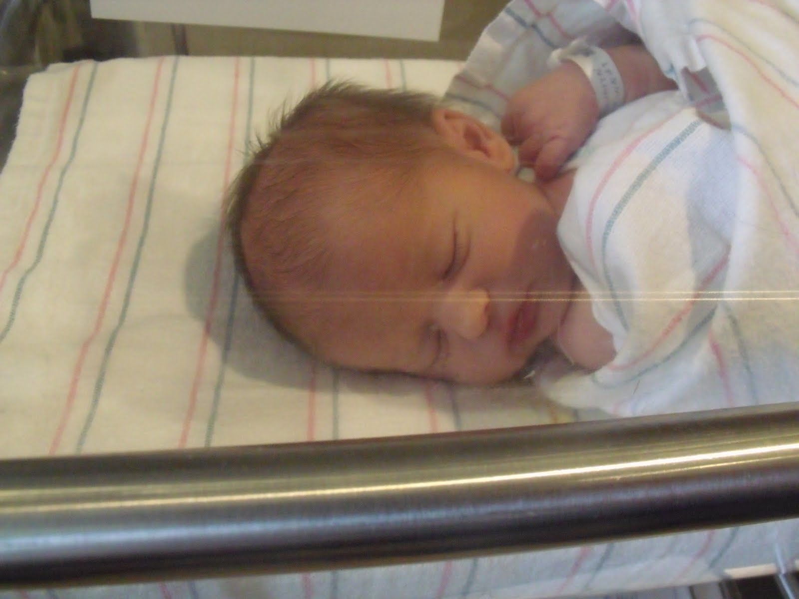 Before they started they let me hold Adam, and Jon brought him to me. He was just so precious! I got to hold him a few minutes and then the medicine kicked in. I fought to stay awake, because I wanted to breastfeed Adam so bad, and I was able to stay awake, but the medicine made me so out of it that, I could not even talk. My words slurred together when I tried to talk, and it was really hard to stay awake. Finally, after almost two hours the doctor finished stitching me and since I had stayed awake, they let me try and breastfeed Adam. After, even though it was late they let our families come in and see Adam for the first time. I was really out of it from the meds, and could barely stay awake at that point. I remember my mom was crying and everyone loved Adam of course!