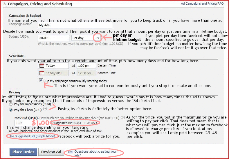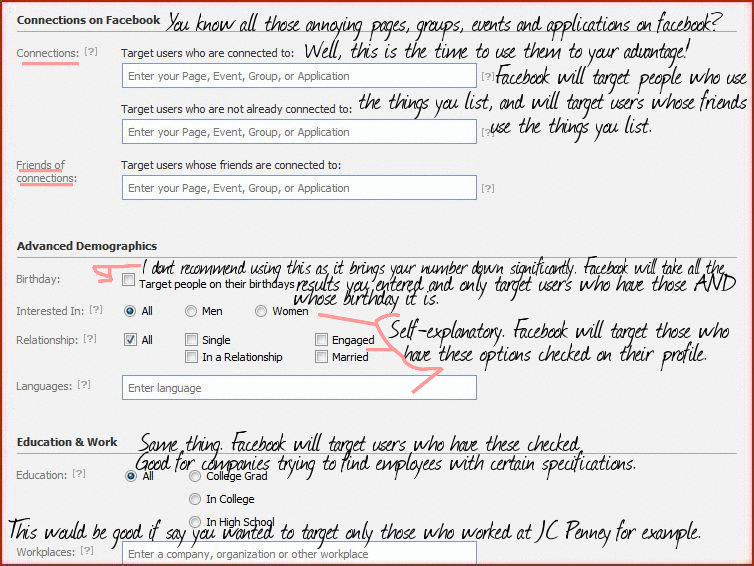 This post is over five years old and I know Facebook has changed their advertising system multiple times by now. I don’t think any of this applies anymore, however If you need help with FB advertising now I would be happy to walk you through it.
