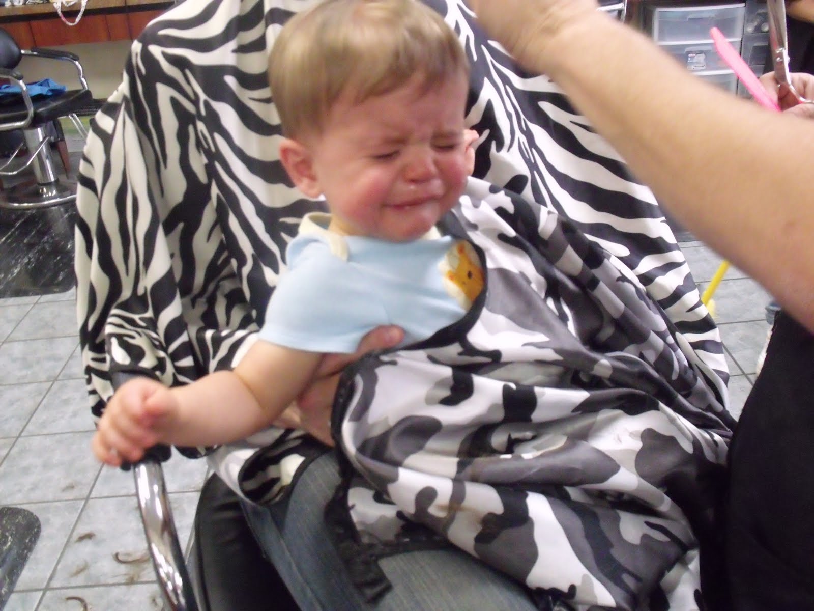 | First haircut, and not too happy! |