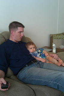 LOL at that last photo in this post, it's such a man photo, sleeping on the couch with the baby in the lap and the remote in the hand! 😉