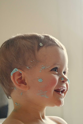 | We tried so hard to get him to smile, he was just so engrossed with that cake! |