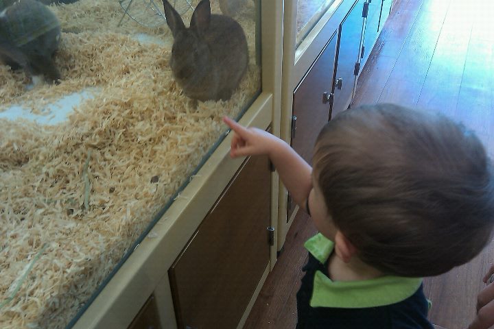 Since we got there an hour earlier we took a bathroom trip, changed Adam and started to walk around the shopping center we had parked at. There was a small pet shop there, so we decided to take Adam in to see if they had any animals. They only had some guinea pigs, bunnies, ferrets, and fish, but Adam seemed to enjoy it!